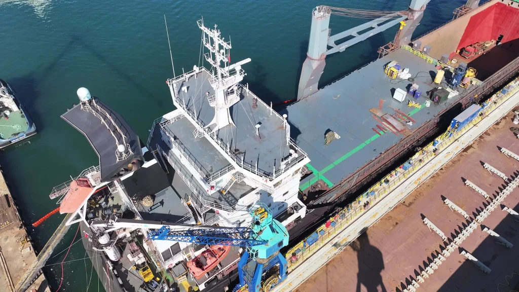 With a vision to support sustainable solutions in krill fishing, Norse Shipyard has commissioned a dry cargo vessel to provide logistical and technical support to krill operations in Antarctica. Krill Support Ship transforming the fishing fleet. The vessel will be equipped with increased fuel storage capacity, a multi-search drone servicing centre to support the fishing fleet. drone hangar and control stationwill also be equipped with expanded and modernised living quarters. Waste management systems are being upgraded and ship and security systems Polar Code in accordance with the standards. Thus, the ship will be made ready for long-term operations in harsh sea conditions.